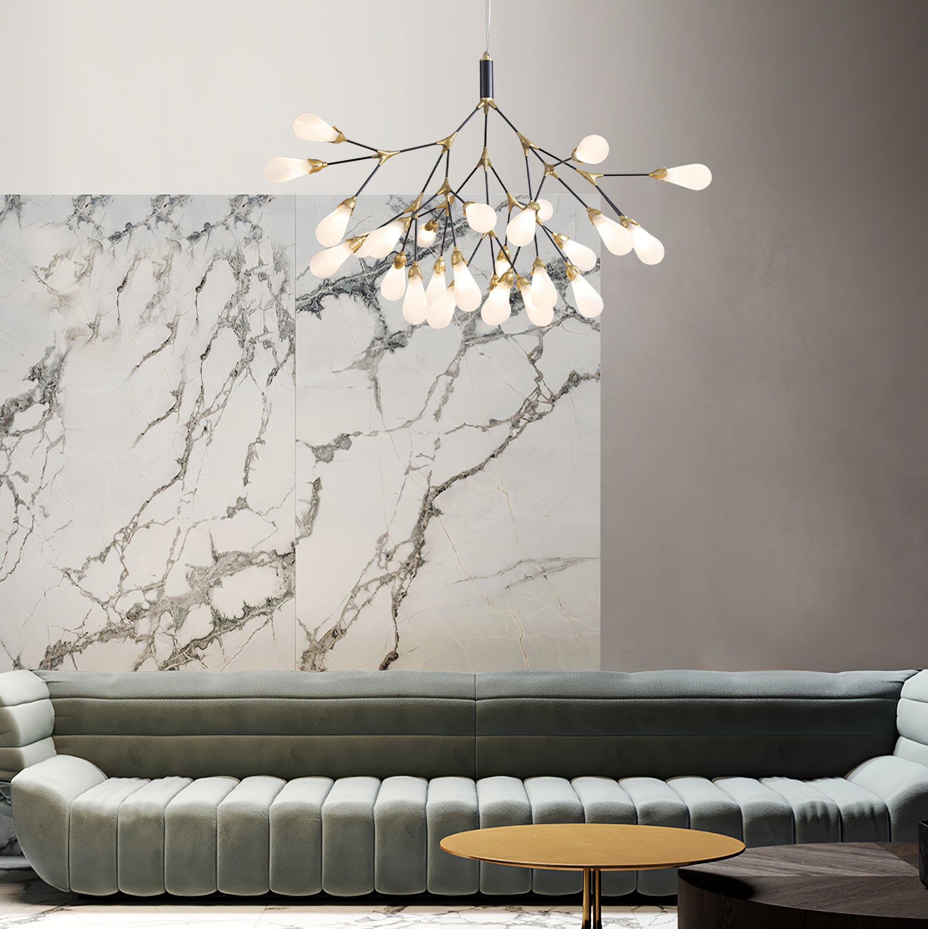 This branching light stays true to its' name with the natural look of a thriving tree. The leaf-like smoke glass shades are finished with a reflective ombre effect--creating a luxurious take on the popular tree branch chandelier style.