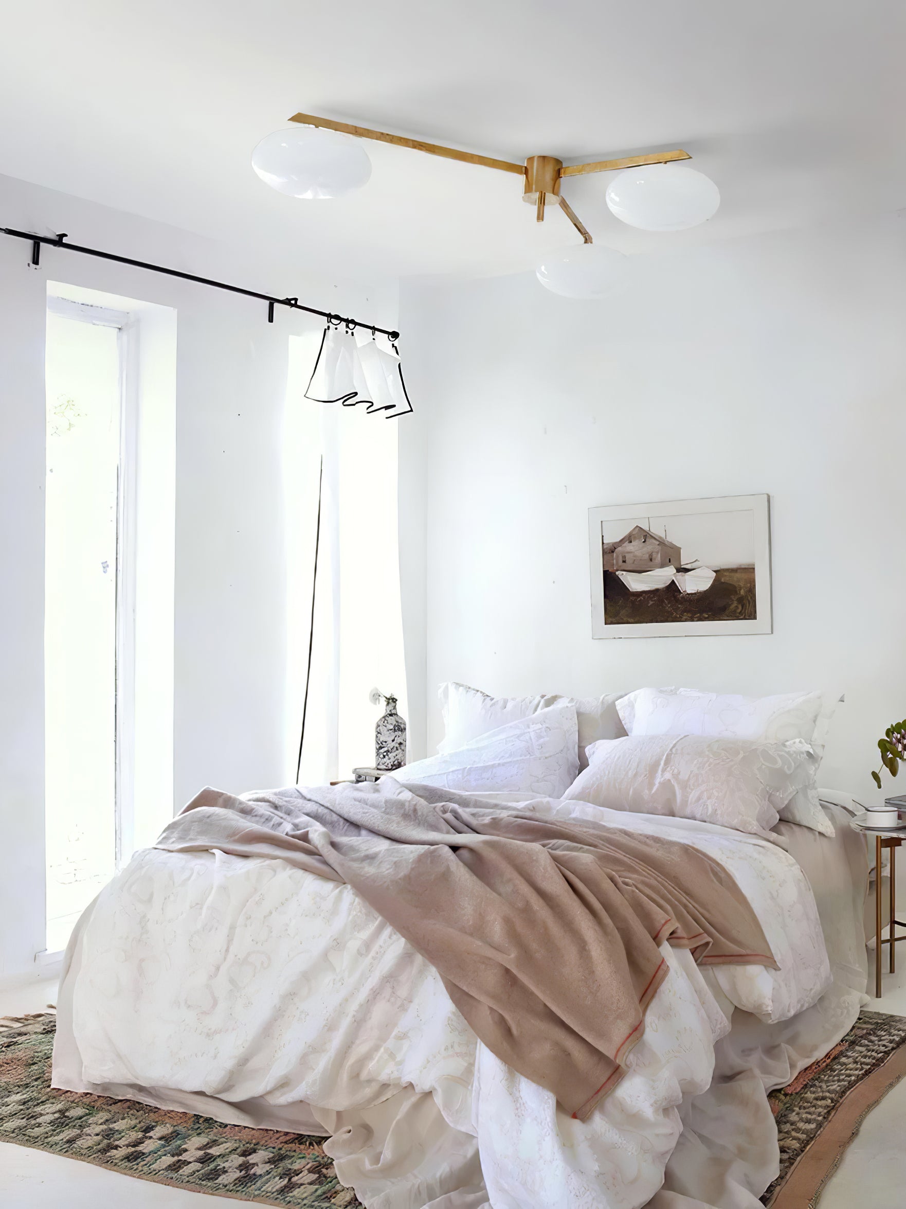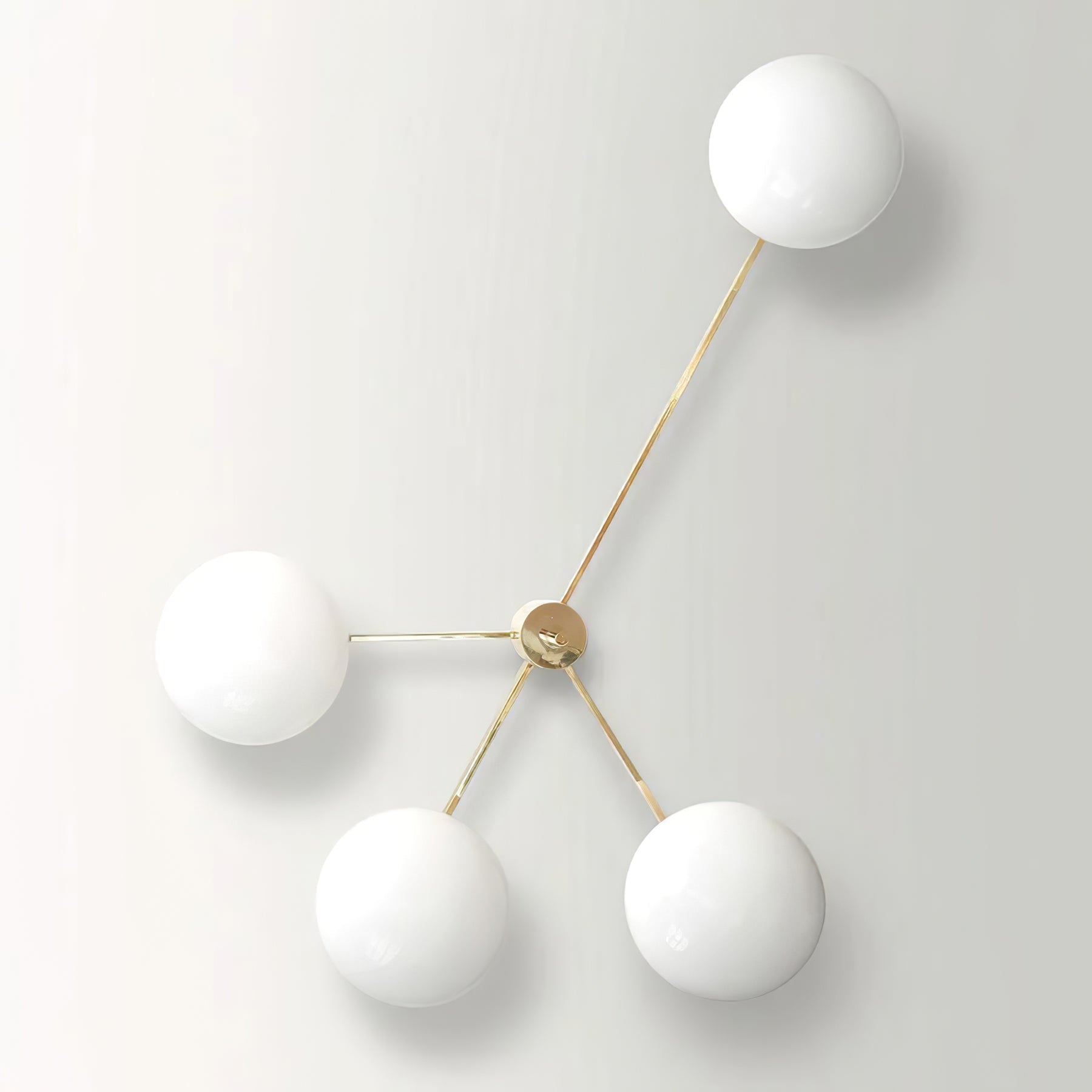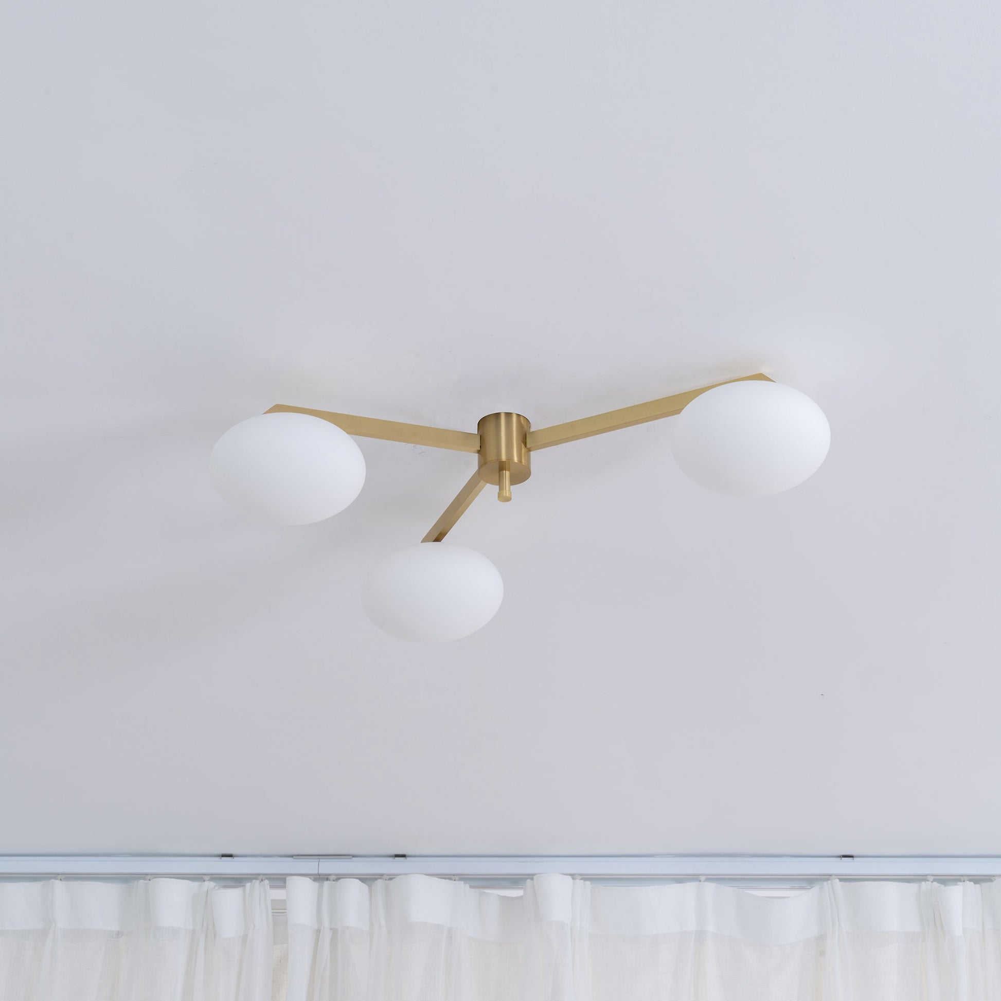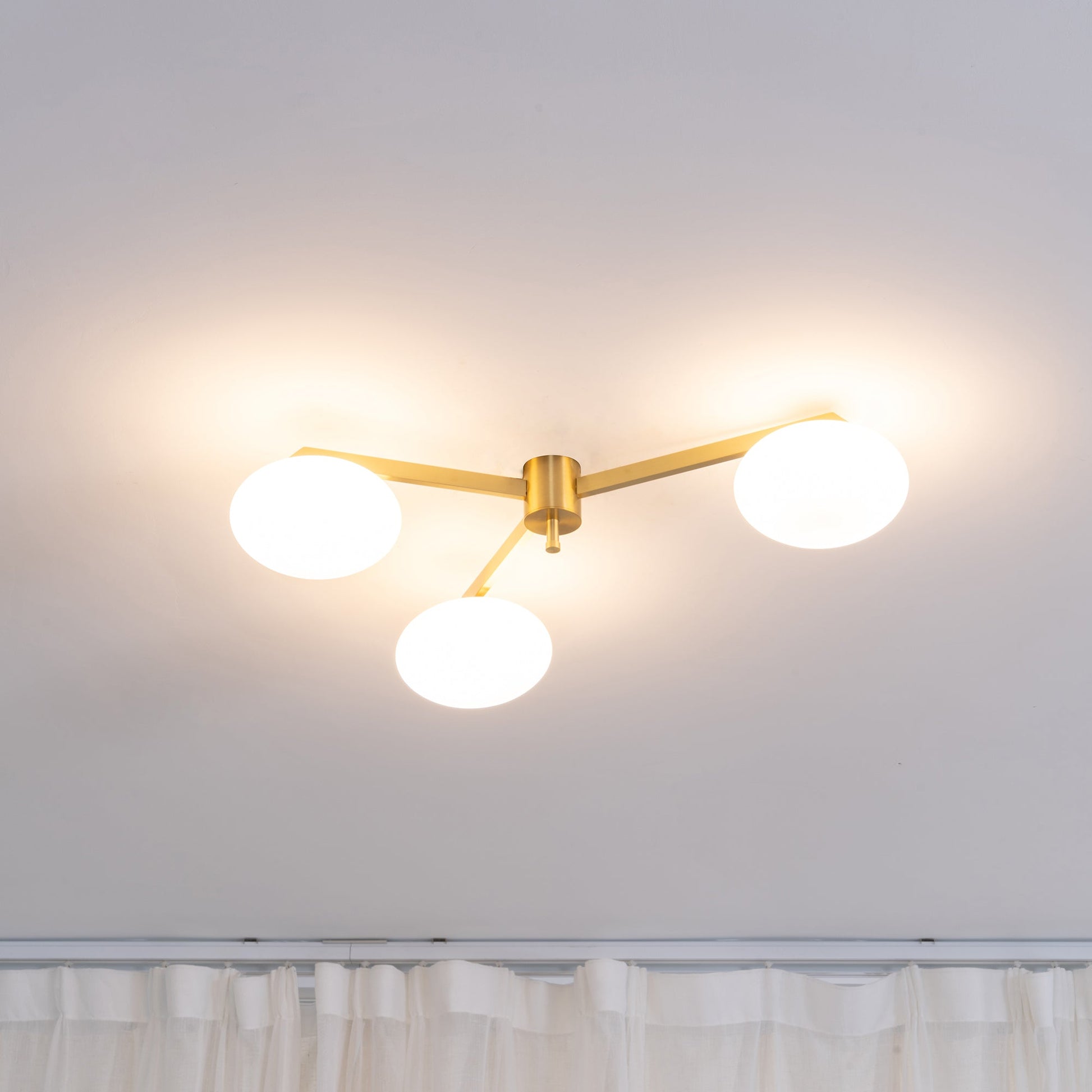 Our versatile Alby Ceiling Lamp is right at home with the casual and refined. Its opal glass shades, shaped like round pearl buttons, suspend from five brass arms for modern appeal. A clean silhouette, that sits flush to the ceiling, is the ideal way to add an extra dose of art deco vibes to bedrooms, foyers, kitchens, and mudrooms.