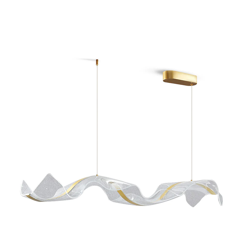 The Alon Linear chandelier features one undulating bands of light. The lampshade is made of transparent acrylic with a fine pattern. The delicate white dots not only decorate it, but also scatter the source of LED light over the entire surface.