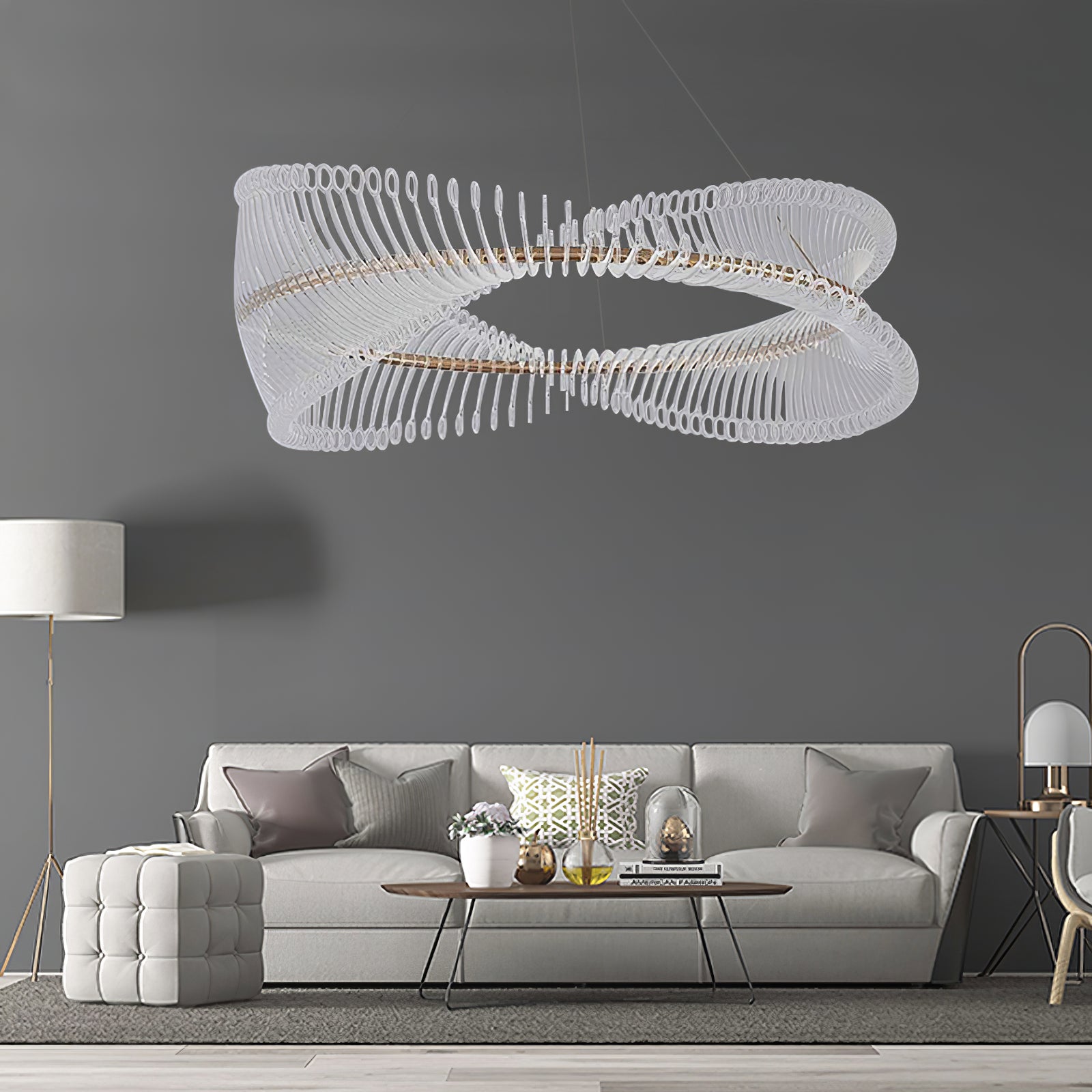 Let a little bit of the wild in with this gorgeous modern chandelier. This chandelier features a solid gold metal frame with an alternate clear Acrylic design with a contemporary flair.