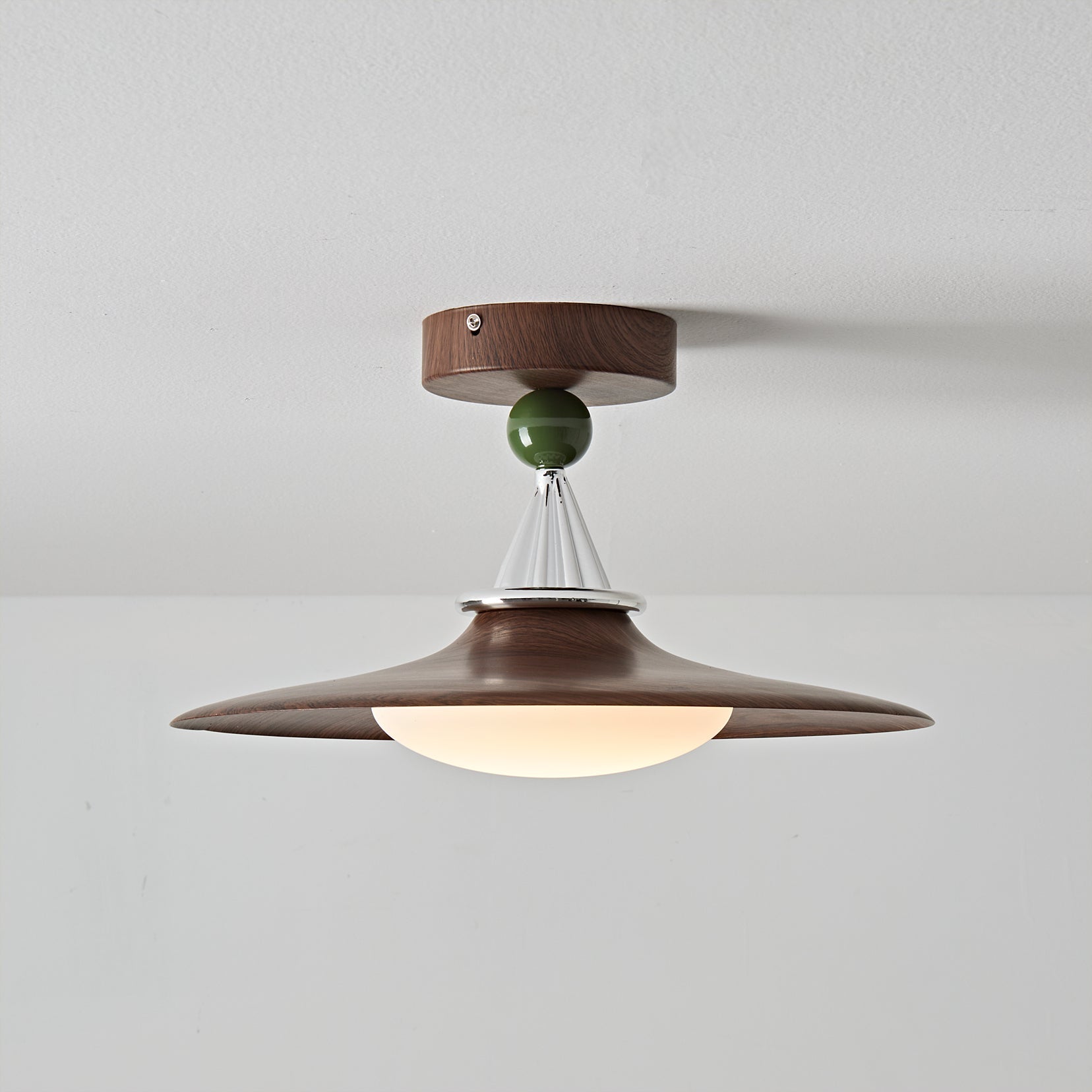The Eden Ceiling Light creates a warm, nostalgic atmosphere with its impeccable Mid-Century Modern design. Featuring a rich wood-tone finish on a sturdy metal body, plus a playful pop of green and chrome, it’s the perfect way to add vintage character to your ceiling without the fuss.