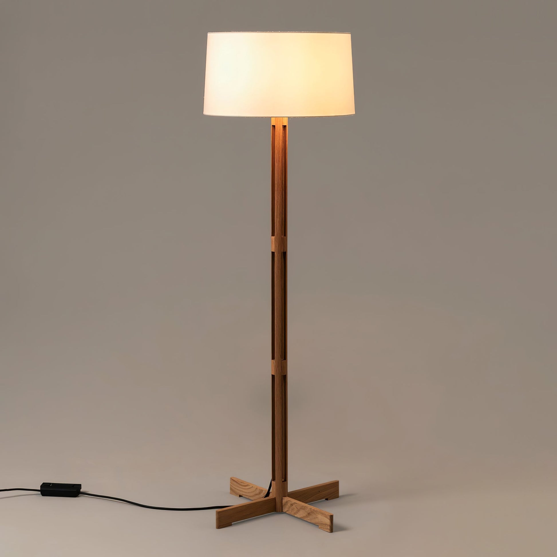 The lamp's cylindrical oak column sits atop a cross base to support the slightly tapered white linen shade. Striking in its simplicity, the FAD Floor Lamp will complement a variety of decor styles with its combination of industrial styling and warm materials.