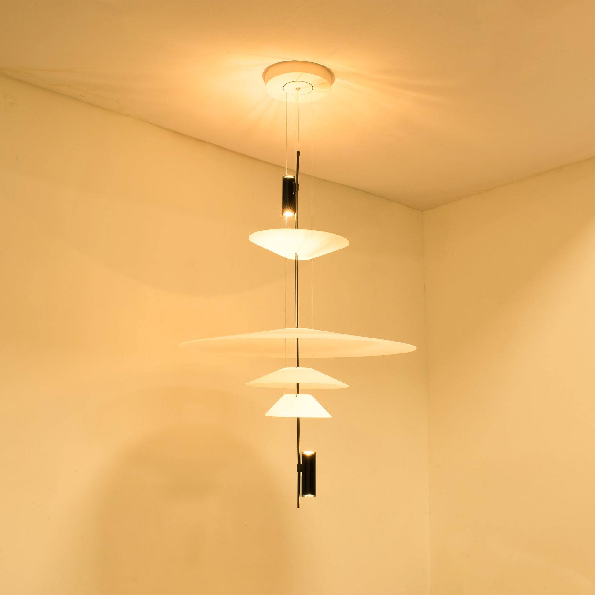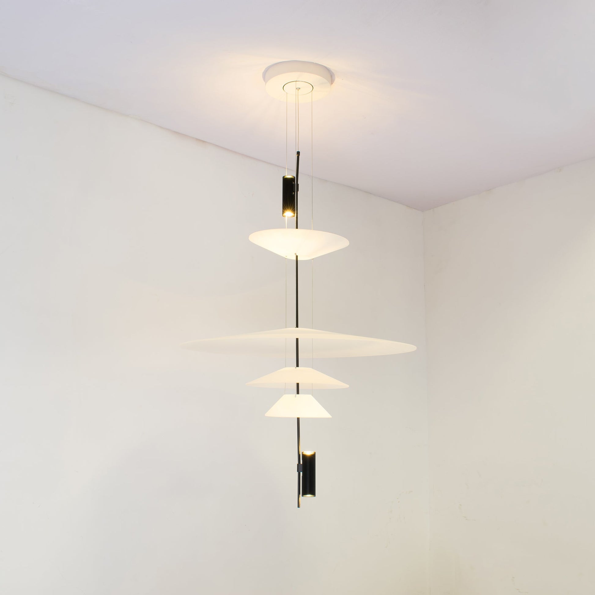 The Flamingo Chandelier in a variety of models as part of the same concept so that the user can select the fitting that is most appropriate to their décor. Available in several finishes reflecting current design trends. A collection of pendant lights that provides ambient light through a thermoplastic translucent diffuser that performs like a spotlight thanks to its LED light source.