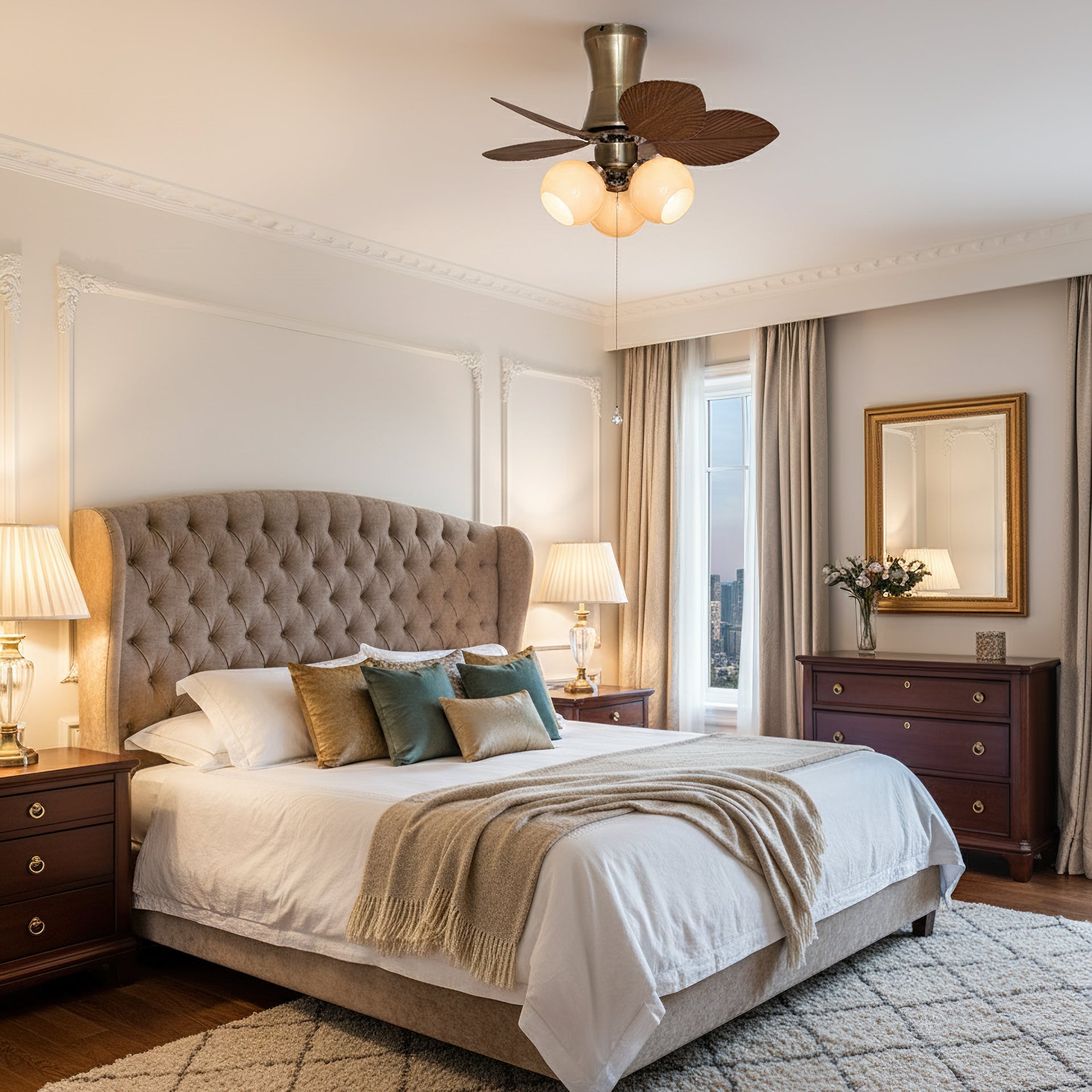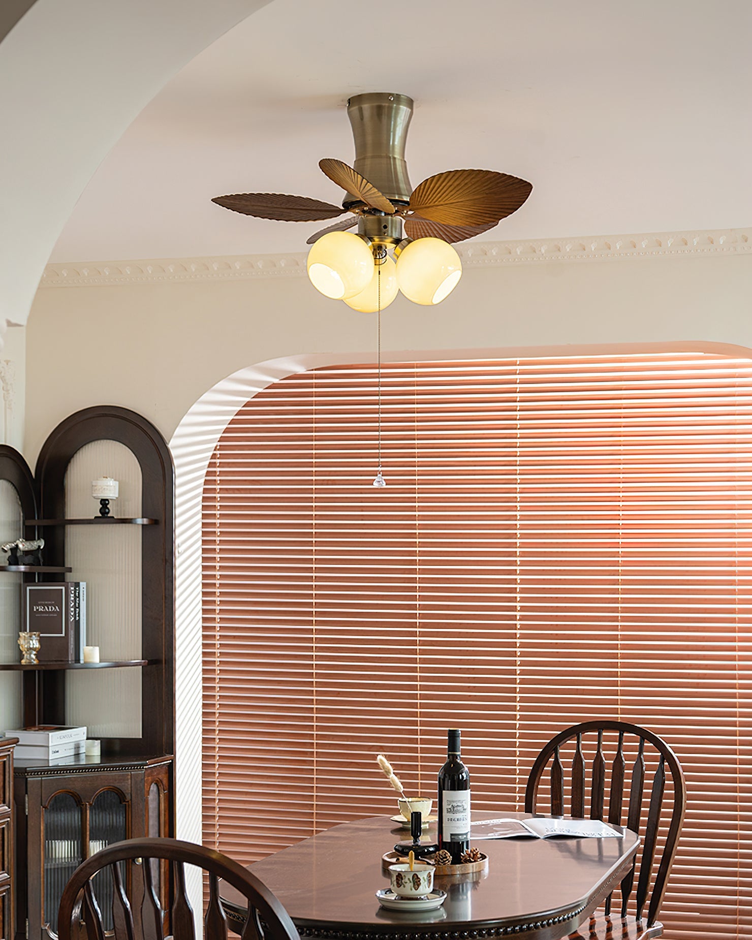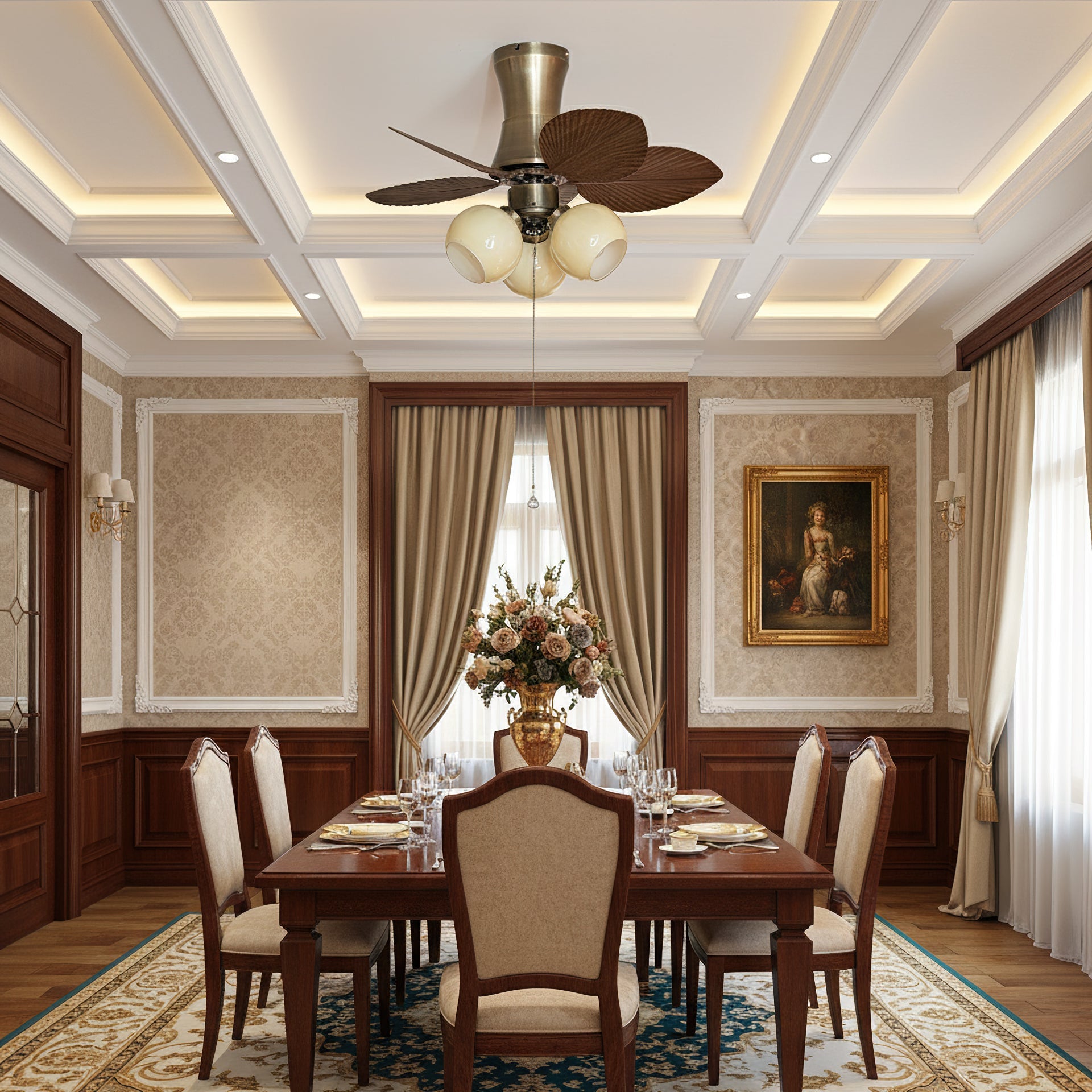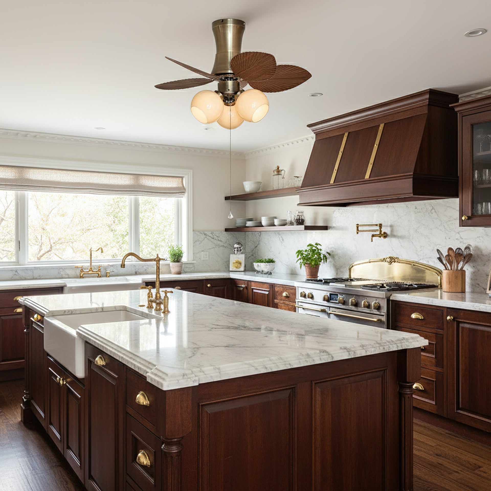 This fan is perfect for cozy, smaller rooms that need a touch of character. It would look fantastic in a smaller bedroom, a den or study, or even an enclosed sunporch.