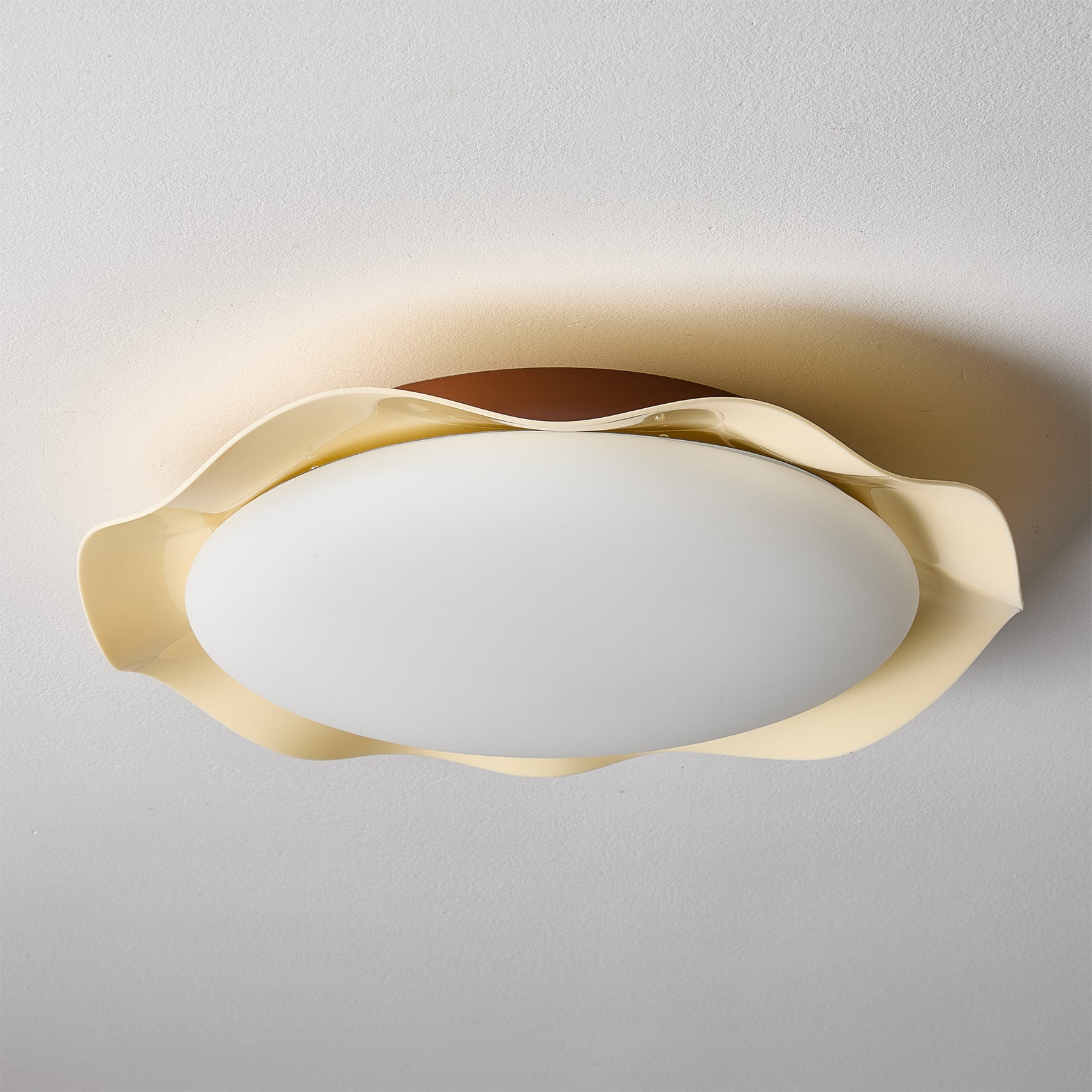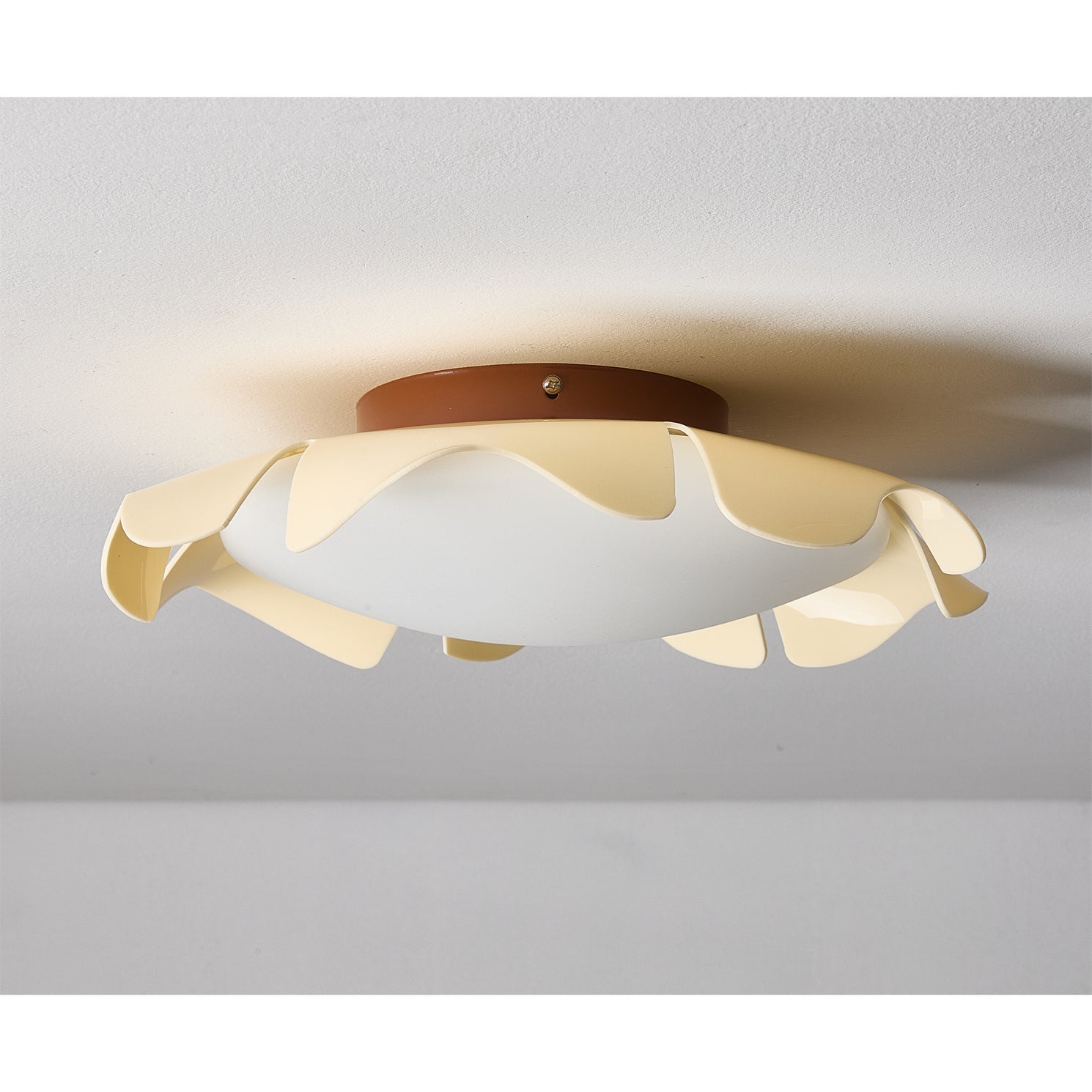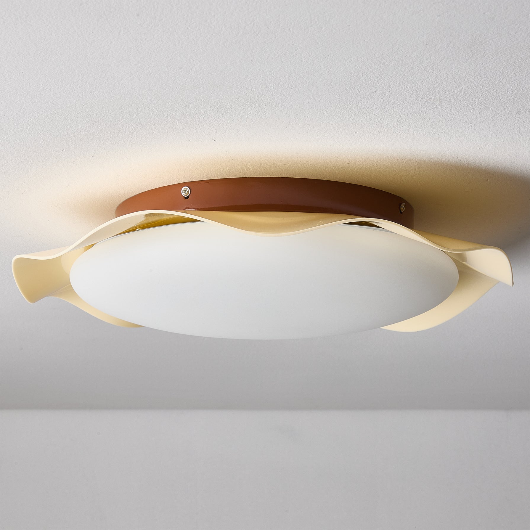 The Kamorie Ceiling Lamp by Lia brings a cheerful sculptural twist to everyday lighting. Crafted from durable metal and acrylic, its playful petal-like silhouette in a creamy beige and warm brown finish adds character to any ceiling space. The frosted acrylic diffuser softens the light for a warm, cozy ambiance, making it a perfect fit for bedrooms, entryways, or kids’ spaces.