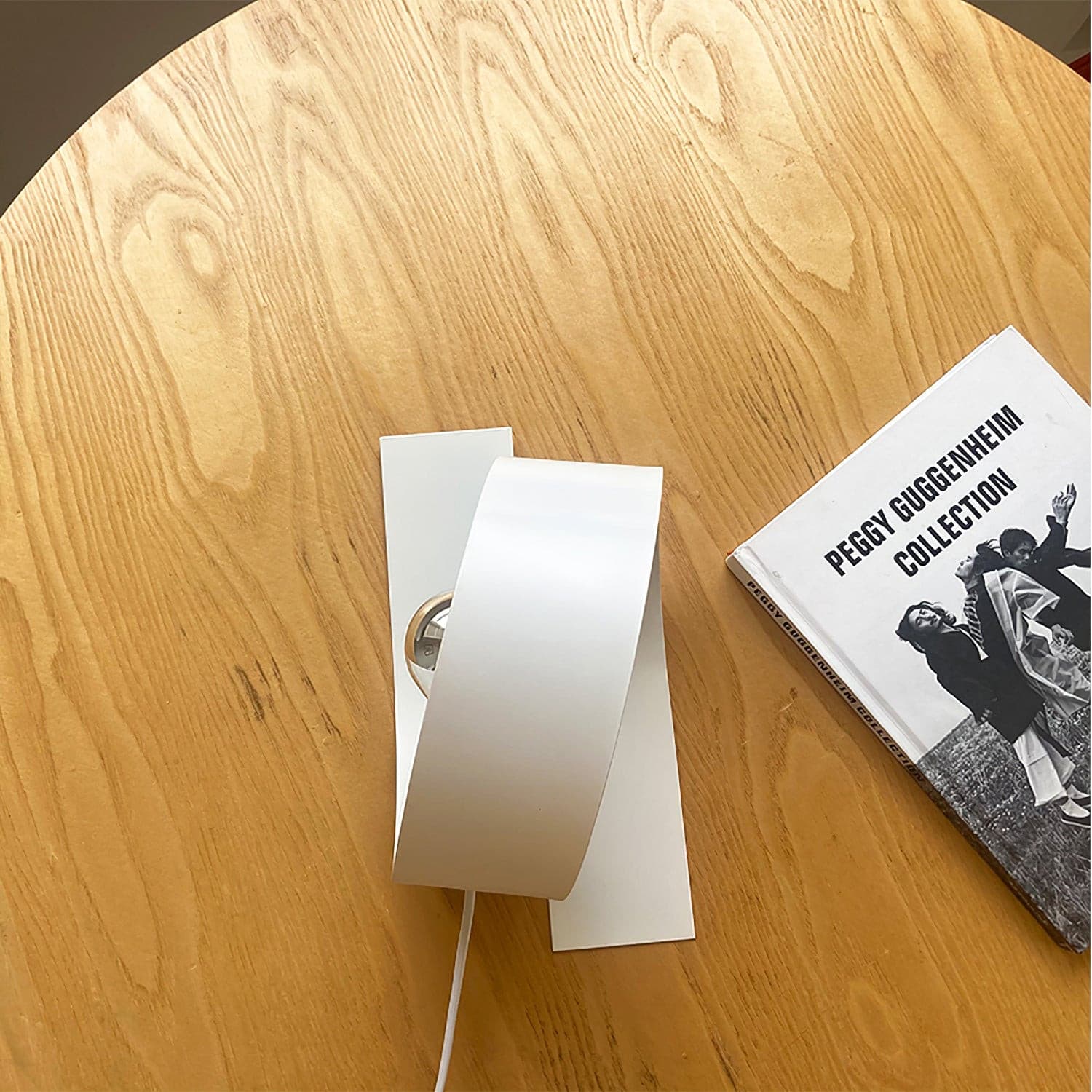 Minimalist white metal 'Looping' Table Lamp. When designing a minimalist item, less is more. Every single element serves a purpose which is why the clean lines and cool silhouette of the lamp collection are the epitomai of minimalist design.