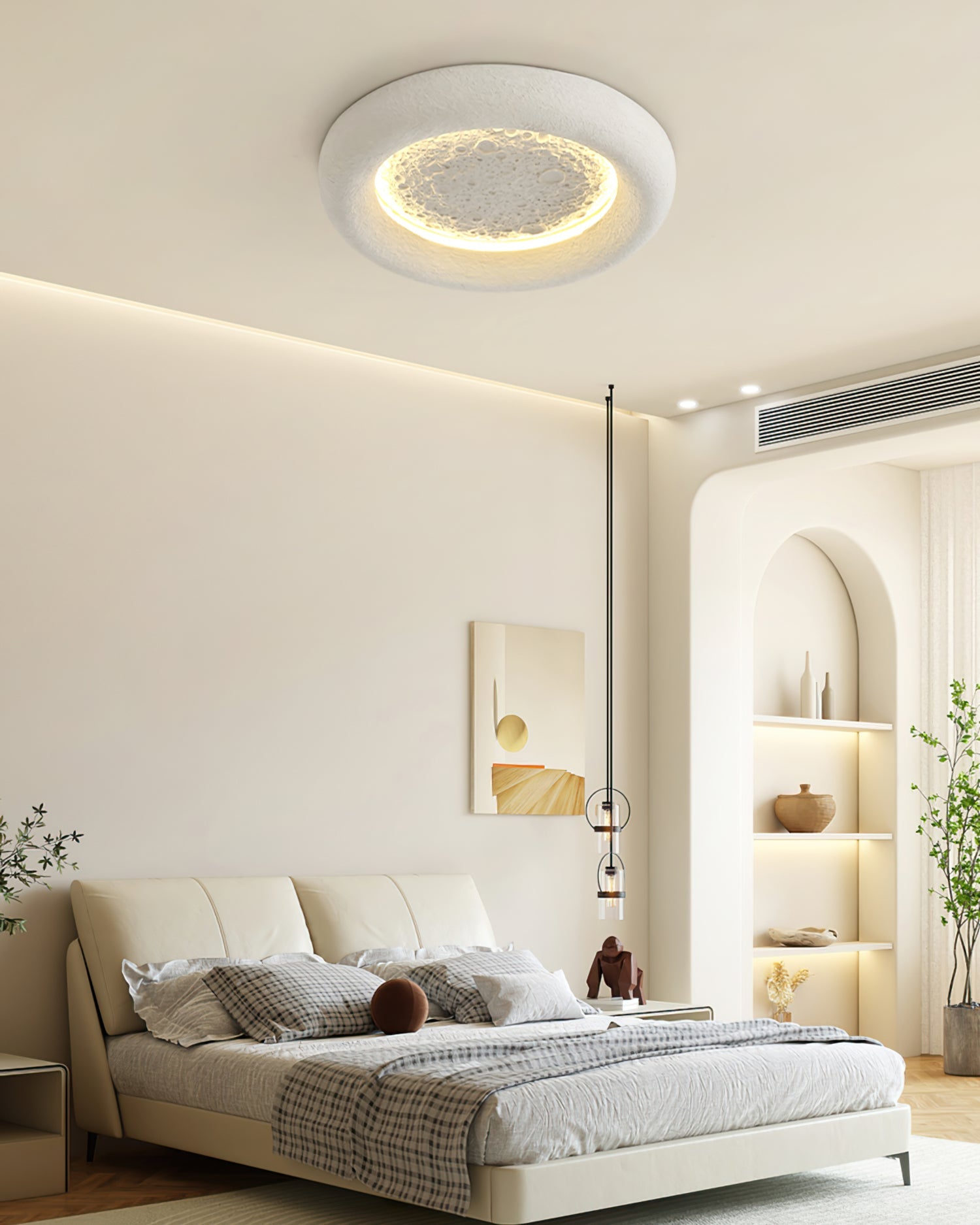 Transform your home with the celestial beauty of the Lia Lunar Glow Ceiling Lamp. Crafted from high-quality resin, this unique lamp features a textured surface that mimics the captivating craters of the moon. The soft, warm light emitted from the circular LED illuminates the intricate details, creating a mesmerizing and serene atmosphere in any room.