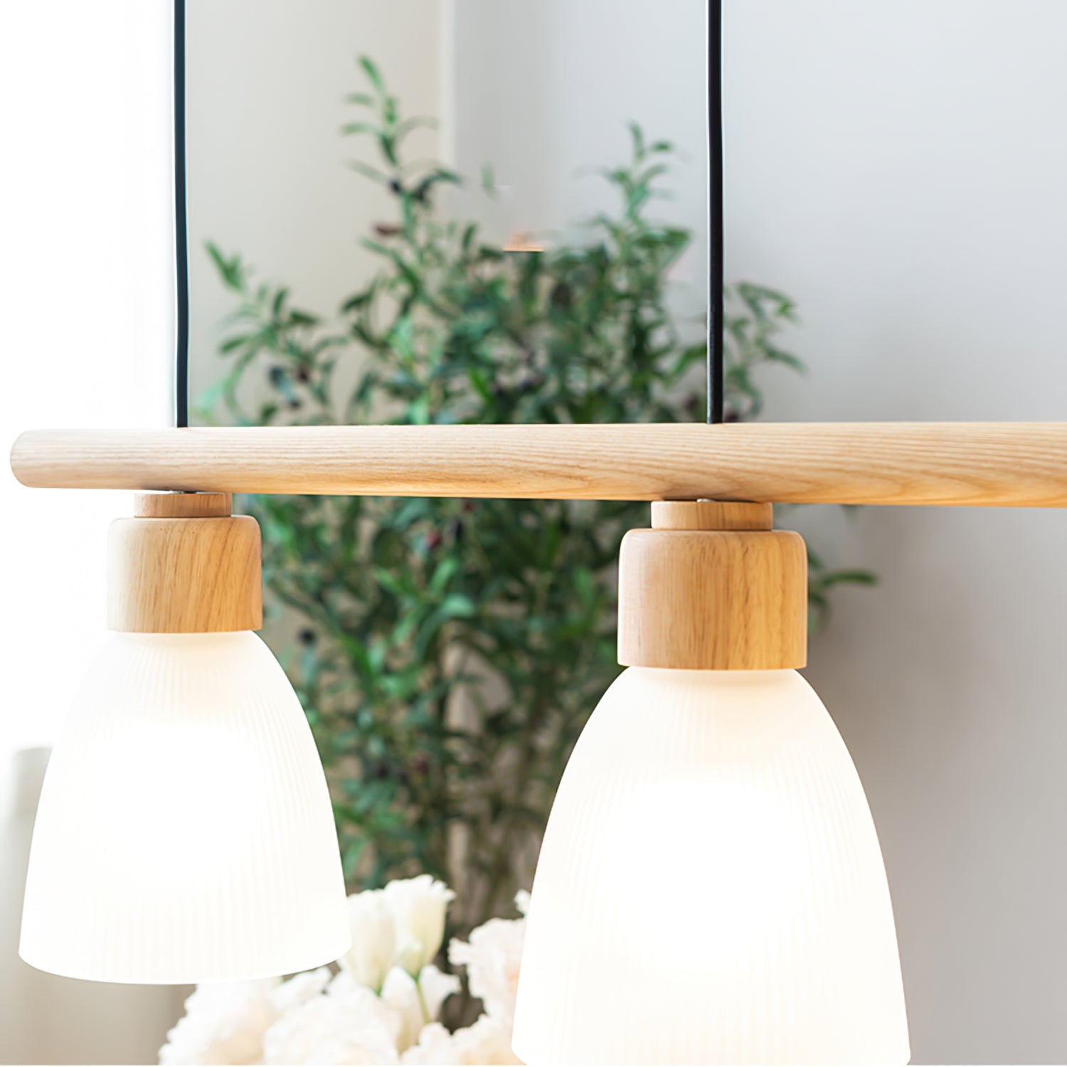 Introducing the Muto Bird Chandelier, a perfect blend of nature-inspired elegance and modern design. This chandelier features a beautiful wooden light bar, adding warmth and a touch of rustic charm to any space. Perched on top are delicate bird figurines, bringing a whimsical and serene atmosphere to your home. The chandelier is completed with three ribbed glass shades that diffuse light softly, creating a cozy and inviting ambiance. Ideal for dining rooms, kitchens, or living areas, the Muto Bird Chandelier is a statement piece that combines functionality with artistic flair, making it a delightful addition to any decor.