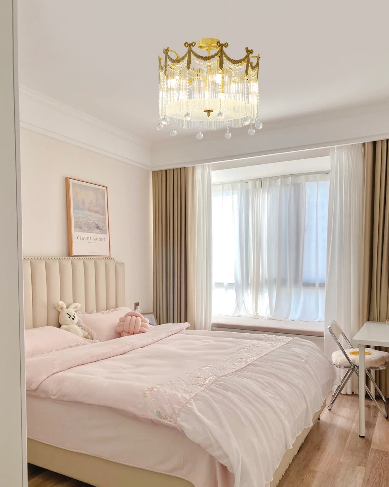 The Palace Water Drop Ceiling Lamp is a stunning addition to any space that will create a dramatic atmosphere. The multi-faceted crystal water droplets provide a sparkling starlight effect for a magical show in your living room.
