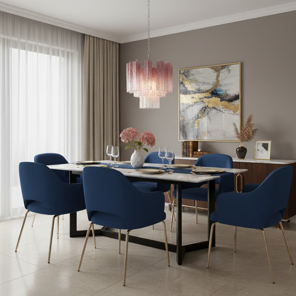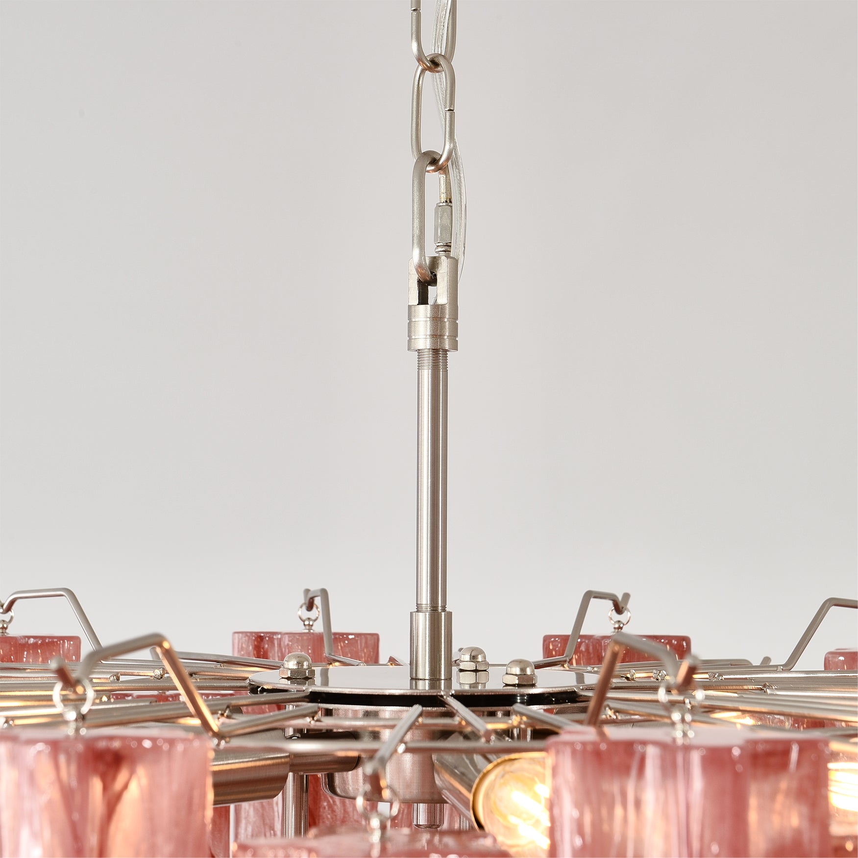 Pink Murano Tube Chandelier, an exquisite blend of artistry and elegance. Crafted from shimmering Murano glass, this chandelier boasts delicate pink tubes arranged in a cascading pattern, evoking a sense of fluidity and sophistication. Each glass tube is meticulously handcrafted, creating a textured surface that reflects light beautifully, making it a stunning focal point in any room. The metal frame adds a touch of modernity, while the chandelier’s tiered design enhances its grandeur. Perfect for adding a soft, romantic glow to your space.