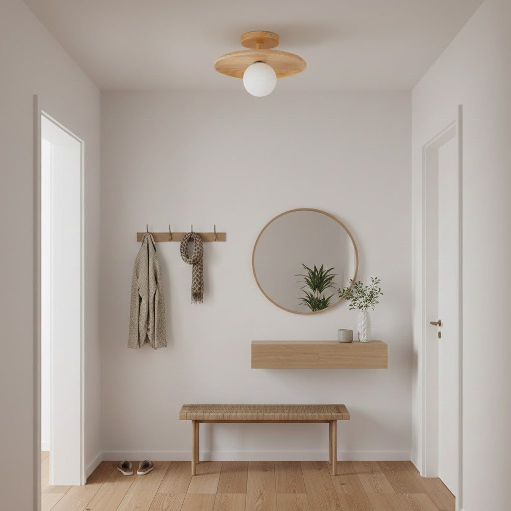 The base is crafted from wood with a natural wood finish that blends in with modern and rustic aesthetics, giving a soothing ambient glow to your surroundings. Its means it's ideal for super-low ceilings and spaces you want to make look more open, so it's great for entryways, hallways, and living rooms.
