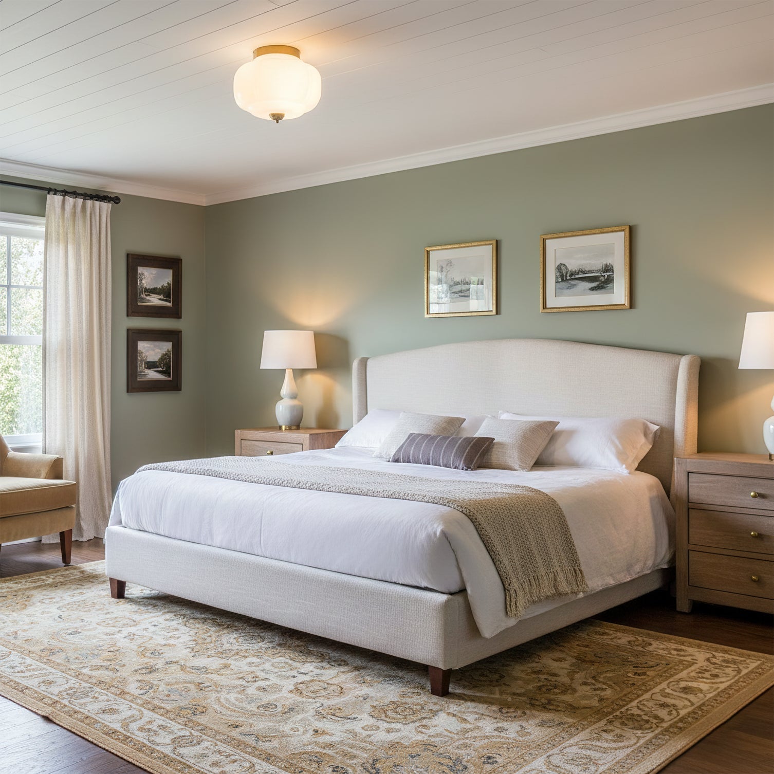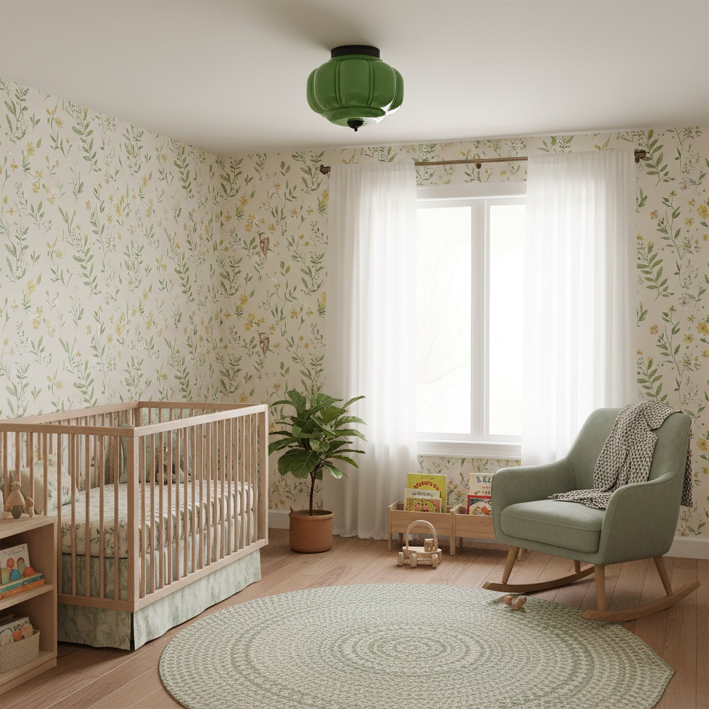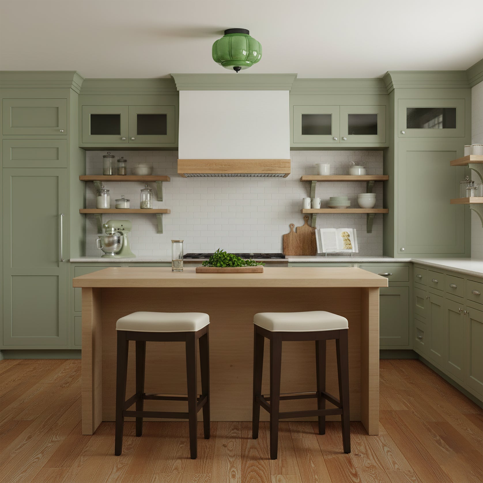 The Poppy Ceiling Lamp by Lia is a piece of timeless elegance. It features a gracefully rounded shade in a soft Green finish, beautifully complemented by warm and refined Brass Accents, exuding a classic vintage charm. The fixture's sculpted form and glossy surface create a sophisticated visual focal point.