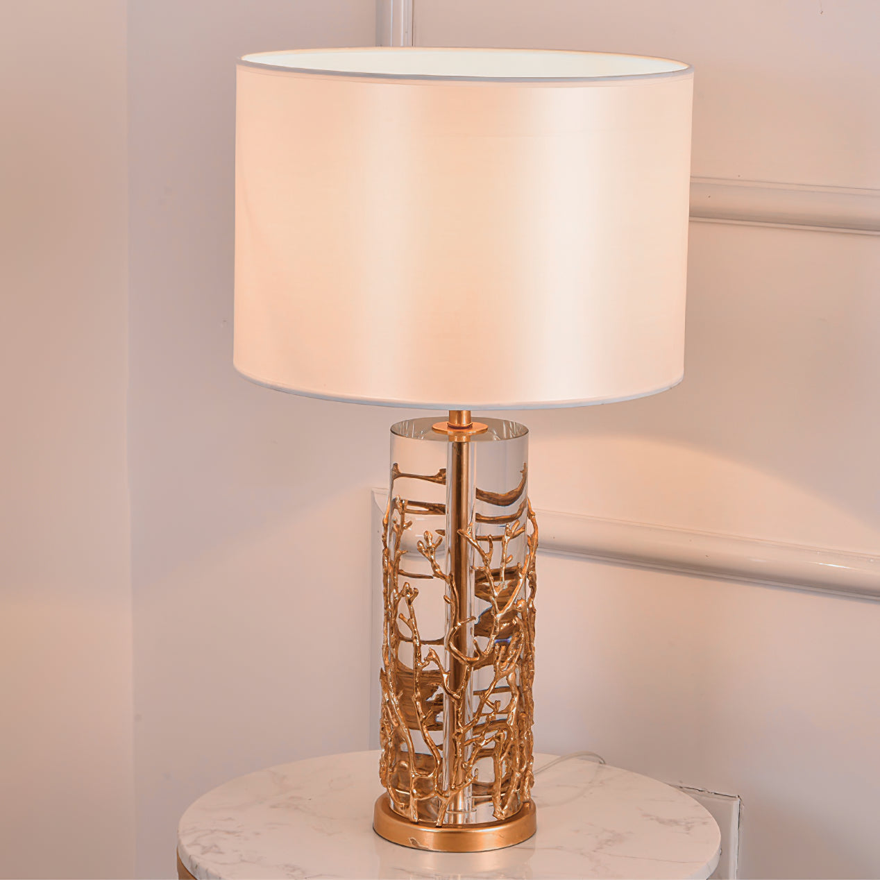 Combining a traditional quatrefoil motif with a modern structural shape, this contemporary cylinder table lamp brings a touch of glam and added glow to any dark corner.