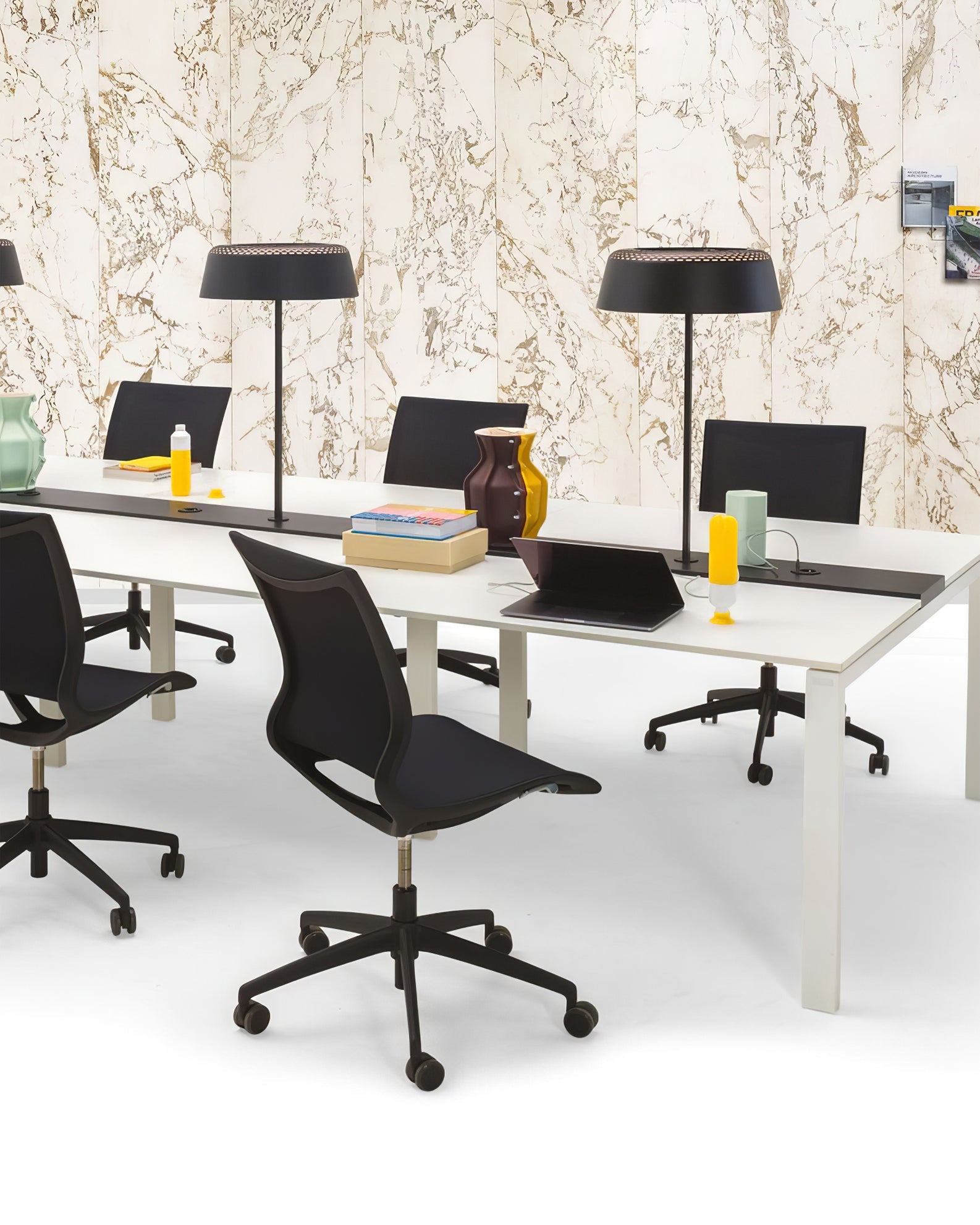 A modern, open table light with a timeless character and incredible light comfort! The LED lighting is cleverly concealed to prevent glare, which makes it ideal for above a desk. The openness of the fixture provides a pleasant light distribution. In addition, the uniform light ensures that no rigid, undesired shadowing occurs.