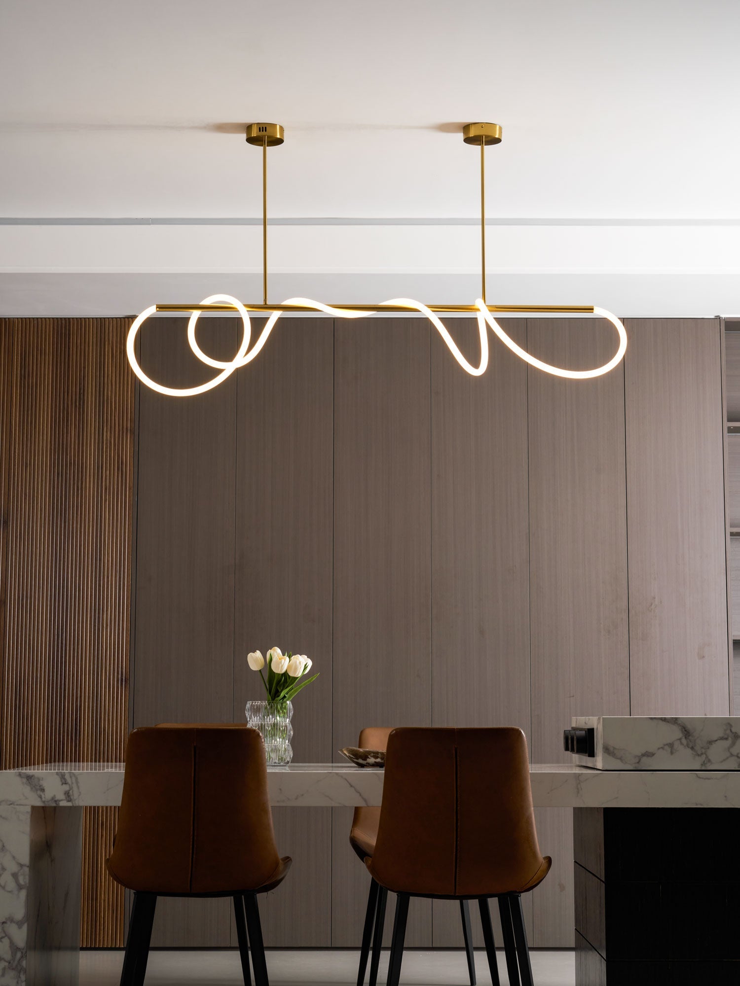The Serpentine Glow Gold Chandelier from Lia is a striking piece that combines modern design with artistic elegance. Featuring a sleek gold frame, this chandelier showcases fluid, serpentine lines that create a dynamic visual effect. The unique looping design is not only eye-catching but also provides ample illumination, making it perfect for contemporary living spaces or dining areas. Add a touch of sophistication and style to your home with the Serpentine Glow Gold Chandelier.