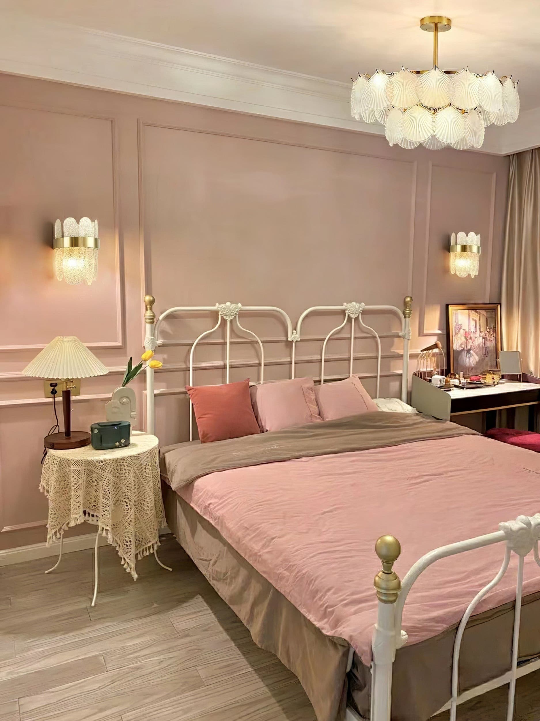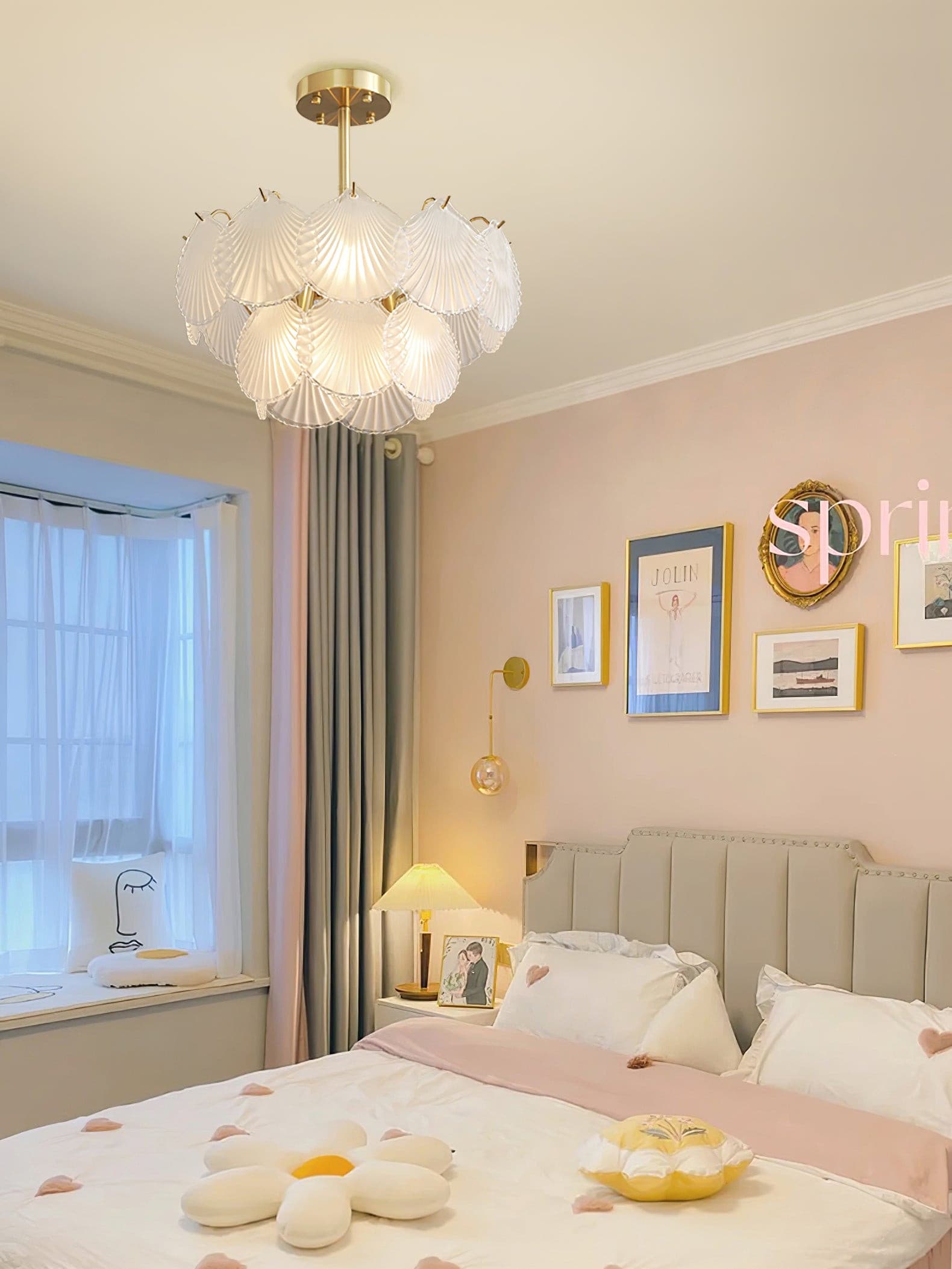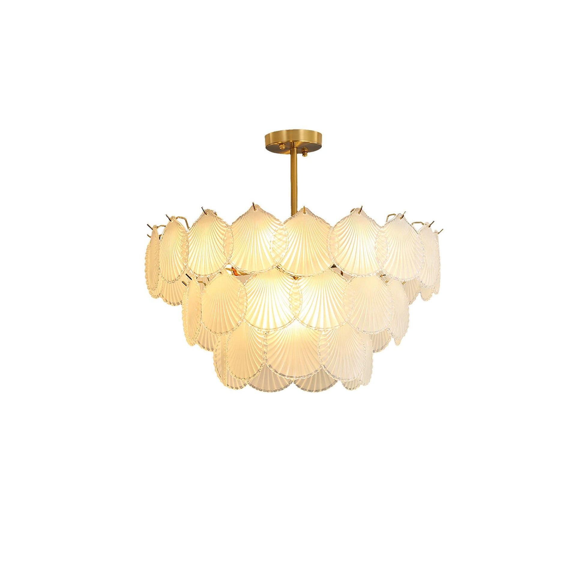 The lighting design has a sense of hierarchy and depth. Crafted with exquisite precision, this chandelier features delicate crystals arranged in a captivating shell-inspired design, evoking the serene beauty of the ocean. Its graceful silhouette and sparkling accents add a touch of luxury to any room, creating a focal point that exudes sophistication.