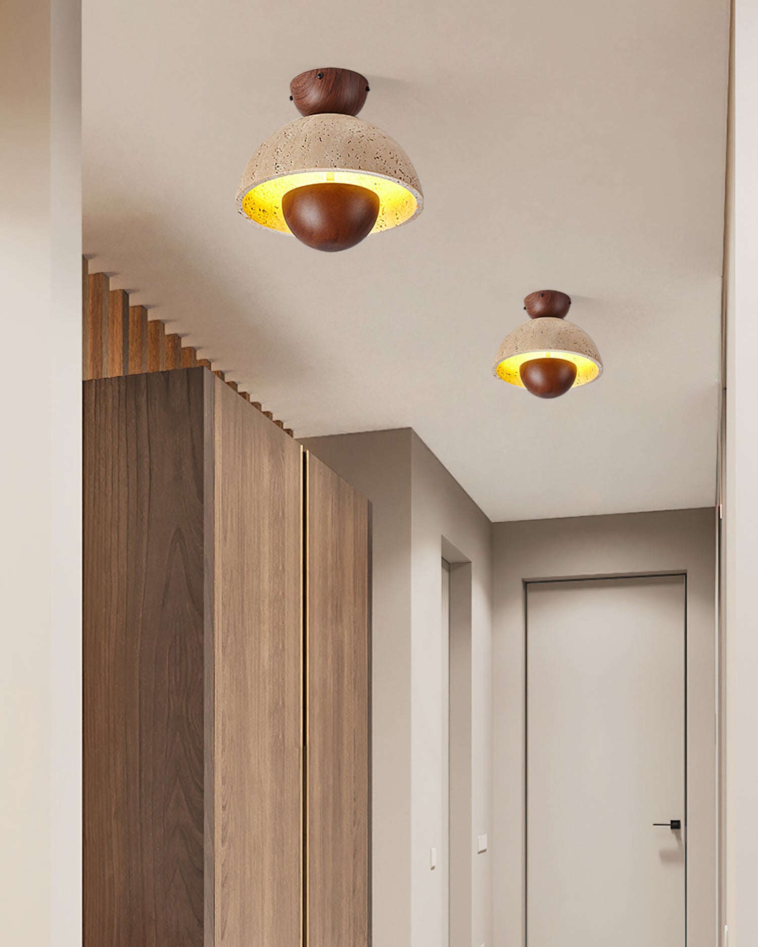 The Sonoma ceiling lamp is expertly crafted from wood and travertine, giving it a unique and elegant look. Its high-quality materials ensure durability and longevity, making it a worthwhile investment. Perfect for adding a touch of sophistication to any room.