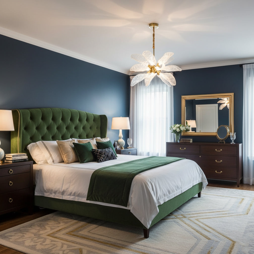 The Venini Leaf Bloom Chandelier from Lia features an exquisite design with antique brass branches adorned with resin leaf lampshades. Each leaf-shaped shade is meticulously crafted to resemble natural foliage, capturing fine veins and textures. The warm, ambient light emitted through the translucent resin leaves creates a welcoming and luxurious atmosphere. Perfect for any sophisticated interior, this chandelier combines nature-inspired elegance with vintage charm, making it a standout piece in any room.